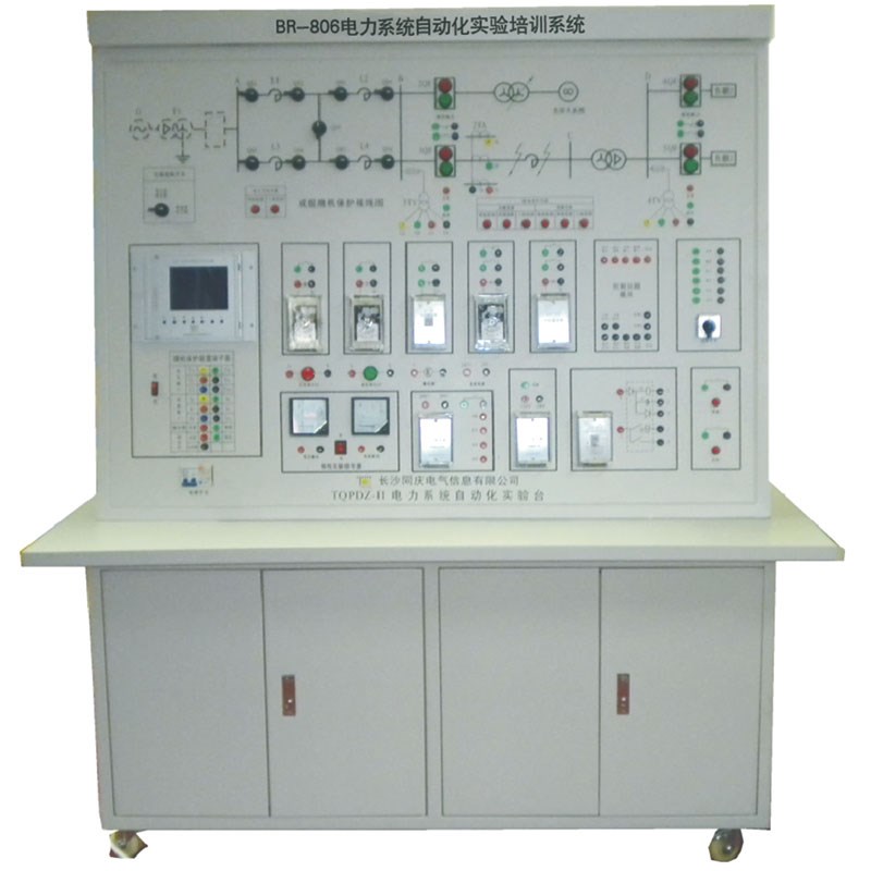 實驗系統(tǒng)中包括繼電保護(hù)一次模擬接線圖,由系統(tǒng)電源、2條線路、1臺變壓器、多個模擬斷路器組成,并提供備用電源和負(fù)載接口。一次模擬主接線可模擬系統(tǒng)最大、最小、正常運行方式,并可模擬中性點直接接地和不接地系統(tǒng)。線路阻抗具有多個電抗抽頭,可模擬不同長度的線路。在一次模擬主接線的線路和變壓器上課設(shè)置接地、相間短路和三相短路故障。