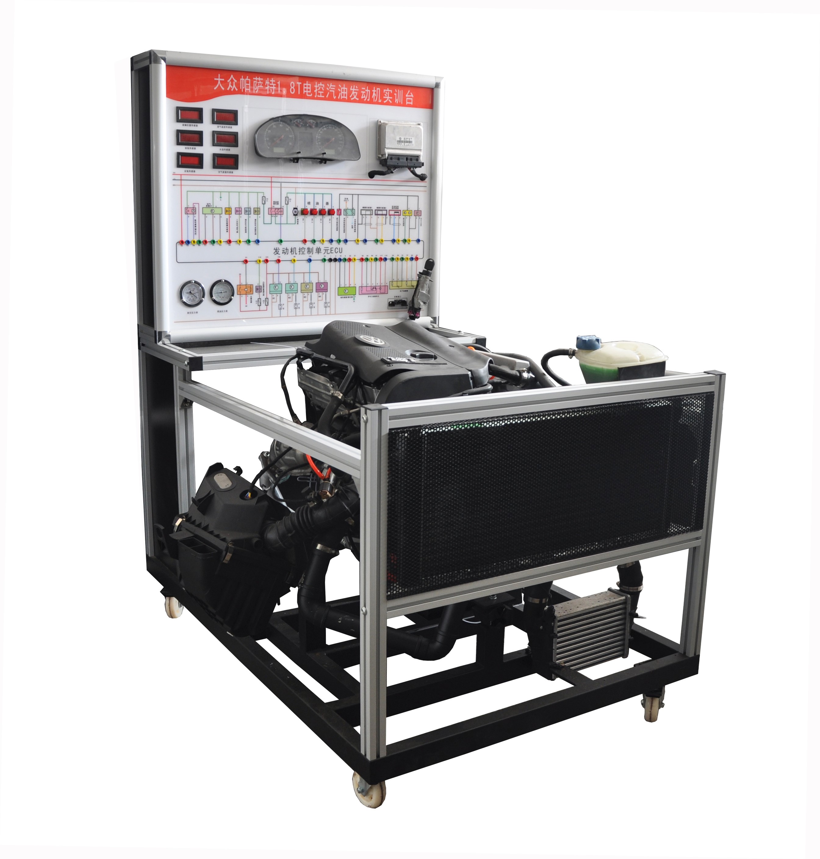 2、測量面板:面板上有發(fā)動機電控系統(tǒng)電路圖和4mm測量端子,通過萬用表或示波器在測昂端子處檢測電路元件的電壓。電阻。頻率或波形;面板上的LED顯示噴油脈寬和節(jié)氣門開度